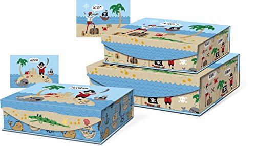 -. Title : Punch Studio Pirate Treasure Hunt Children's Nesting Flip Top Boxes with Magnetic Closure, Set of 3