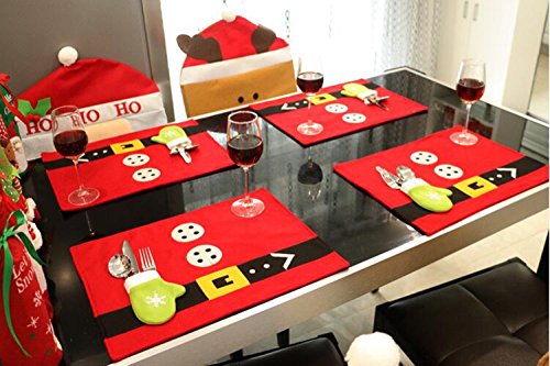 D-Foxes 4 PCS Christmas Table Mats Napkin Dish Bowl Food Placemats for Xmas Party Decoration Santa Claus