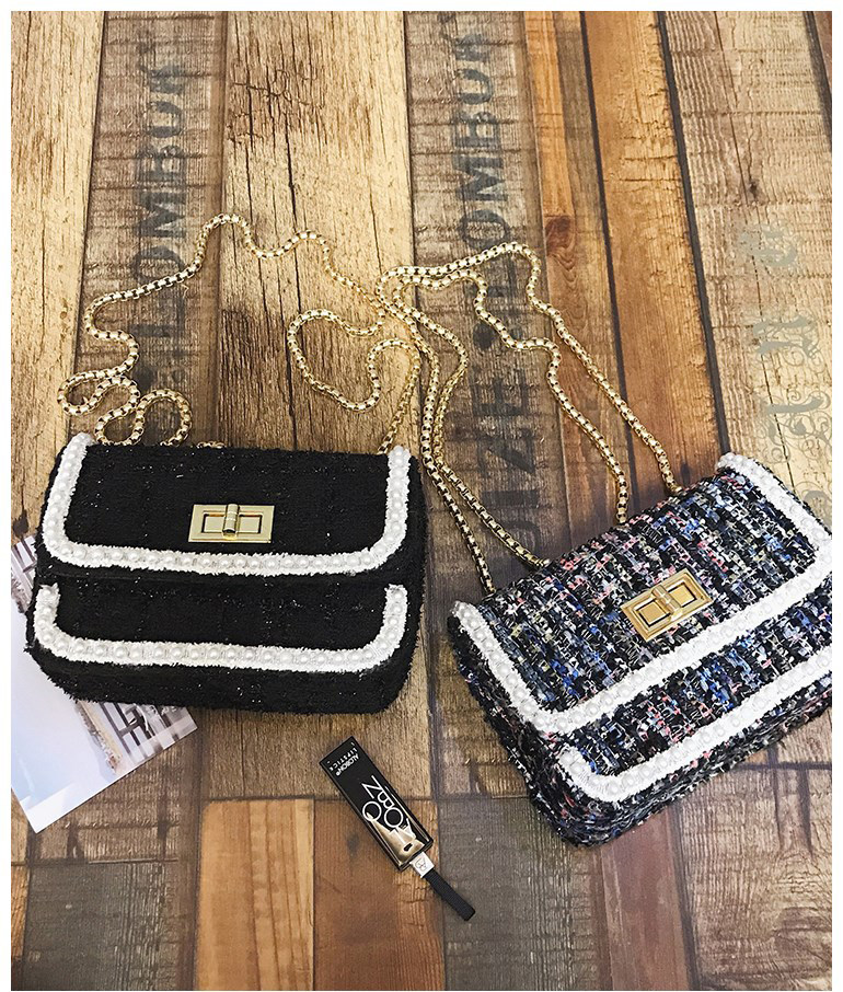 韩版时尚链条小包包女新款撞色毛呢小方包气质百搭单肩斜挎包