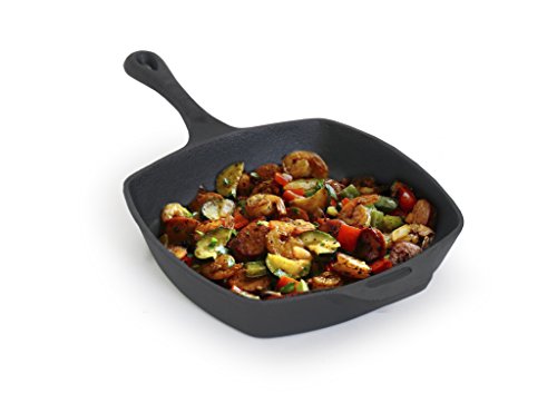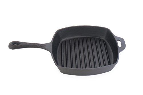 FORHAUZ PRE-SEASONED CAST-IRON SQUARE GRILL PAN, 10.5", BLACK