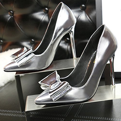 Studio : YLSZ-High heels Publisher : YLSZ-High heels Binding : Misc. Product Description Popular elements: Bowknot shape of toe: pointed Product type: Spot Upper material: artificial PU style: European and American Applicable gender: Female Heel height: Super heel (8CM and above) pattern: Solid Suitable season : Winter, spring, summer, autumn Color: gold, silver Size: 34,35,36,37,38,39 Sole material: rubber Inside material: leather Upper height: low to help Heel shape: fine with Sole: Viscose shoes Wearing style: Sleeve / overshoe Function: increase Suitable sport: hiking Insole Material: PU Style: Single shoes Applicable scene: Banquet 0