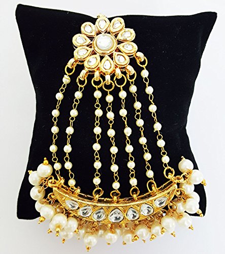 Stunning traditional kundan & pearls Jhoomar passa for bold women of today. This Jhoomar passa is an ideal statement piece to compliment any special occasion. It can be worn as maang tikka also. This is a perfect gift for girls / women for marriage, birthday, Diwali, Eid, Raksha bandhan or any other auspicious occasions.Feature