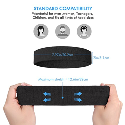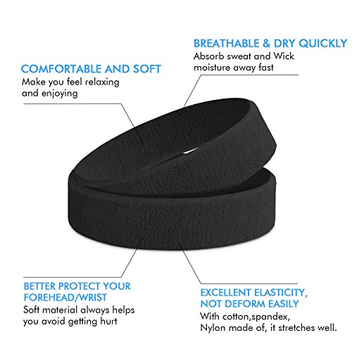 Sweatband Sports Headband for Men & Women - 5PCS / 10PCS Moisture Wicking Athletic Cotton Terry Cloth Sweatband for Tennis, Basketball, Running, Gym, Working Out