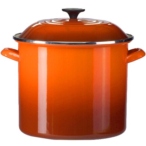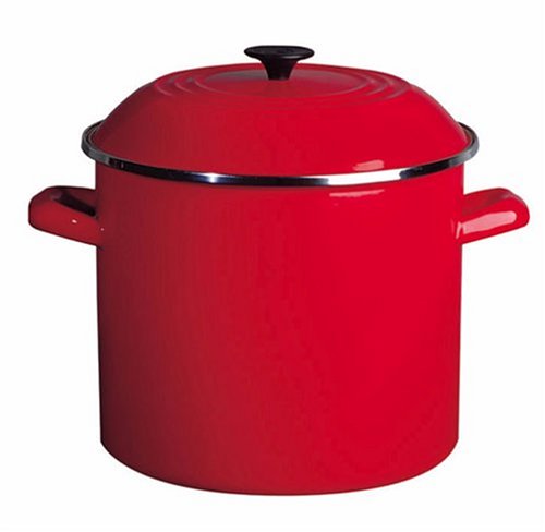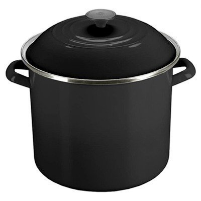 8-quart stockpot made of heavy-gauge carbon steel with porcelain-enamel finish