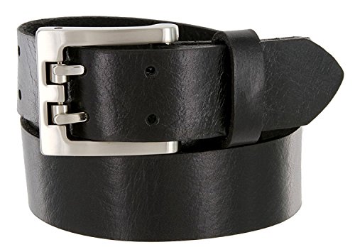 (Hagora)/Accessories/Belts Buckles/DIRECT FROM USA/Hagora Men 1-3/8" Wide Black Full Leather Wrinkled 2 Prong Metal Buckle Belt