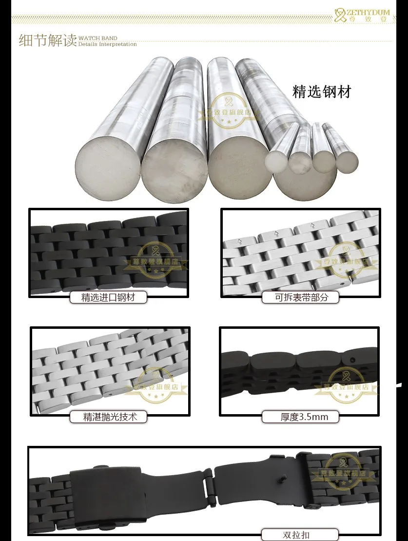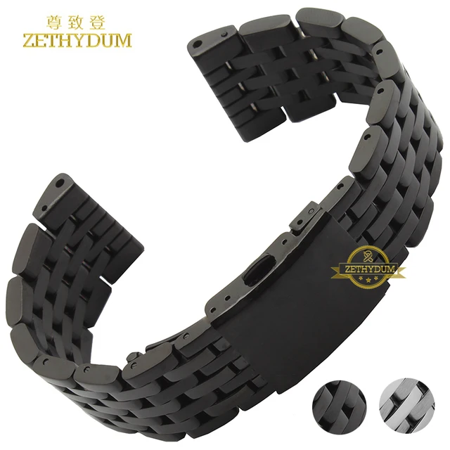스테인레스 스틸 팔찌 고체 금속 손목 시계 스트랩 24 26 28 30 미리메터 손목 밴드 블랙 실버 액세서리 시계