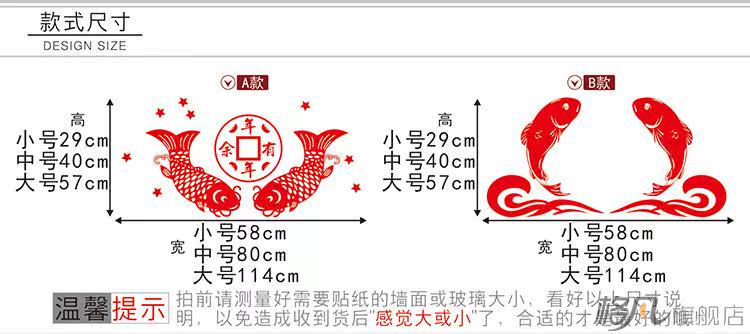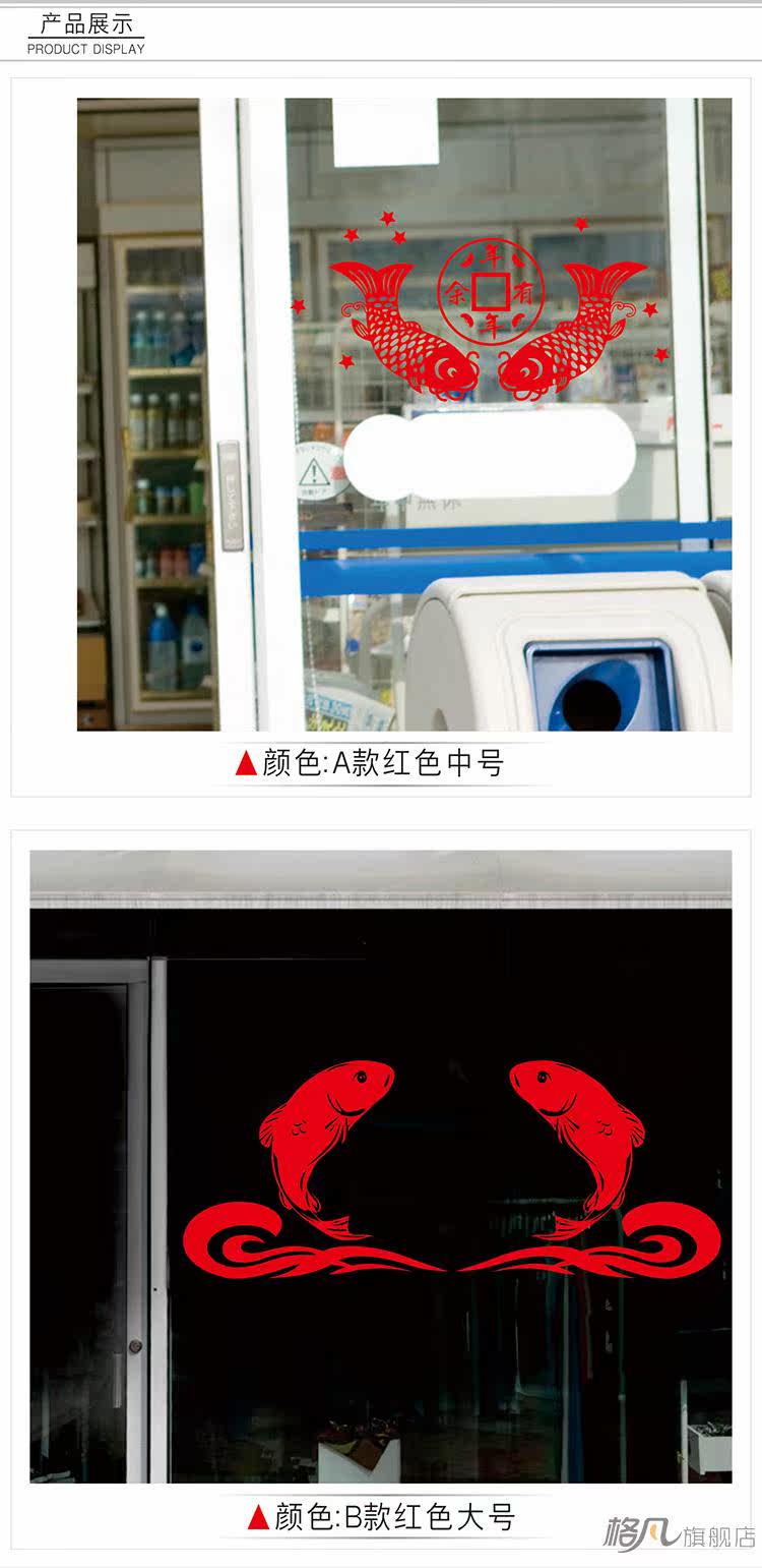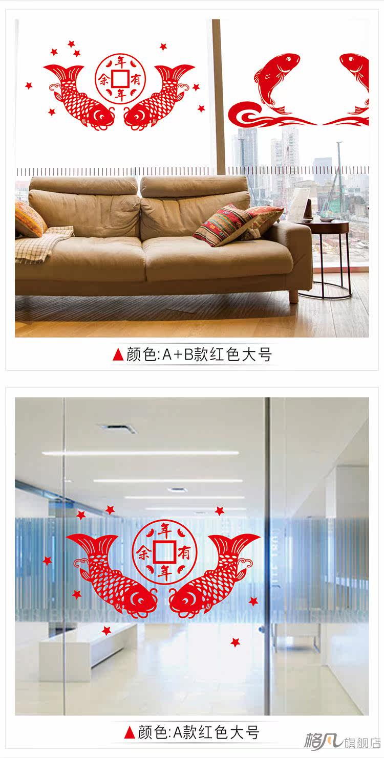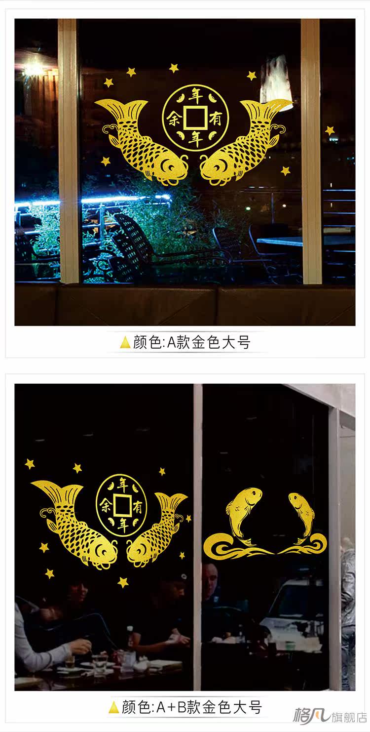 新年快乐玻璃装饰贴纸中国风春节过年年年有余双鱼墙贴画