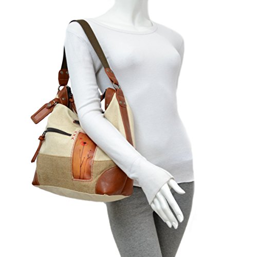 -. Feature : Deep main zipper closure, 2 exterior pockets, interior zipper pocket, interior slip pocket and phone holder / Crossbody with adjustable vegan leather strap, combination of genuine leather and vegan leather for design points with a drop length of 25.5 inches / Removable tassel, key fob / Fabric Handbags / Handbags