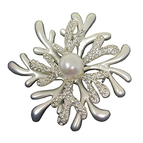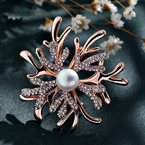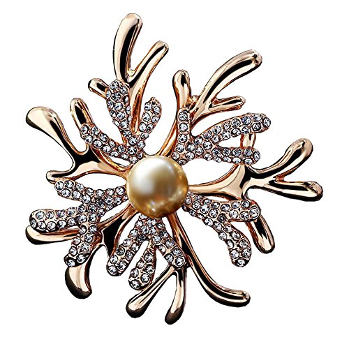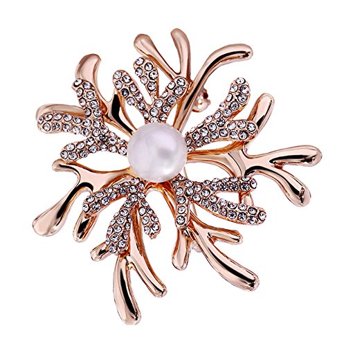 -. Title : WONDER-BEAUTY Coral Brooch Pin - Women's Elegant Pearls Rhinestone Beaded Breastpin