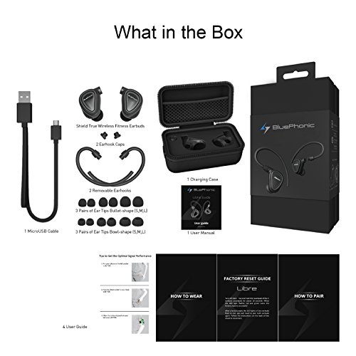 SOUNDS GOOD SATISFACTION - Prepare to hear everything at a whole new level with Bluephonic! Every LIBRE Bluetooth earbuds with mic comes with a 450mAh Power Pouch, 2 Removable Earhooks, 2 Earhook Caps, 3 sets of Bullet-Shaped Eartips, 3 sets of Bowl-Shaped Eartips, a Micro USB Cable, and our 12-MONTH WORRY-FREE GUARANTEE. If for any reason our Bluetooth wireless headphones strike the wrong chord, we'll gladly refund you. No questions asked.