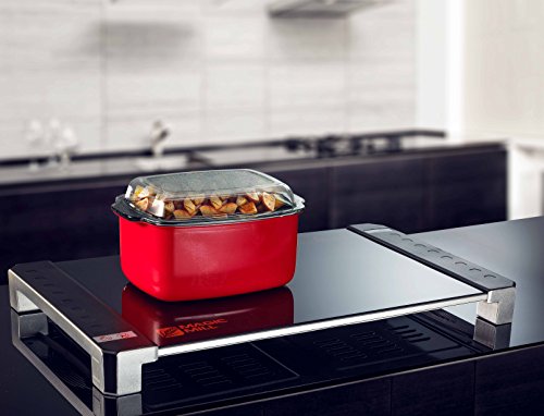 Presentation is everything and with Magic Mill Elegant Glass Warming Tray, you can present in style! This glass warming tray is large enough to fit two 9-by-12 inch casserole dishes, or one roaster pan. The 400-watt appliance provides a powerful heating capacity that holds foods at their optimal temperature while entertaining family and friends. Use it to keep the cheese melted and delicious in lasagna or ravioli dishes, to ensure that meatballs remain hot, to keep apple pies or brownies warm enough to melt ice cream, and for many other purposes. The warmer sports skid-resistant, non-marking feet that keep it steady and prevent damage to tabletops, counters, or buffets, while its handy "power" indicator light offers at-a-glance safety - particularly in the presence of young children. . The Magic Mill Glass Warming tray is designed to keep food warm only and food place on the tray should be fully cooked and already hot. The warming tray measures approximately 21-inch by 16-inchFeature