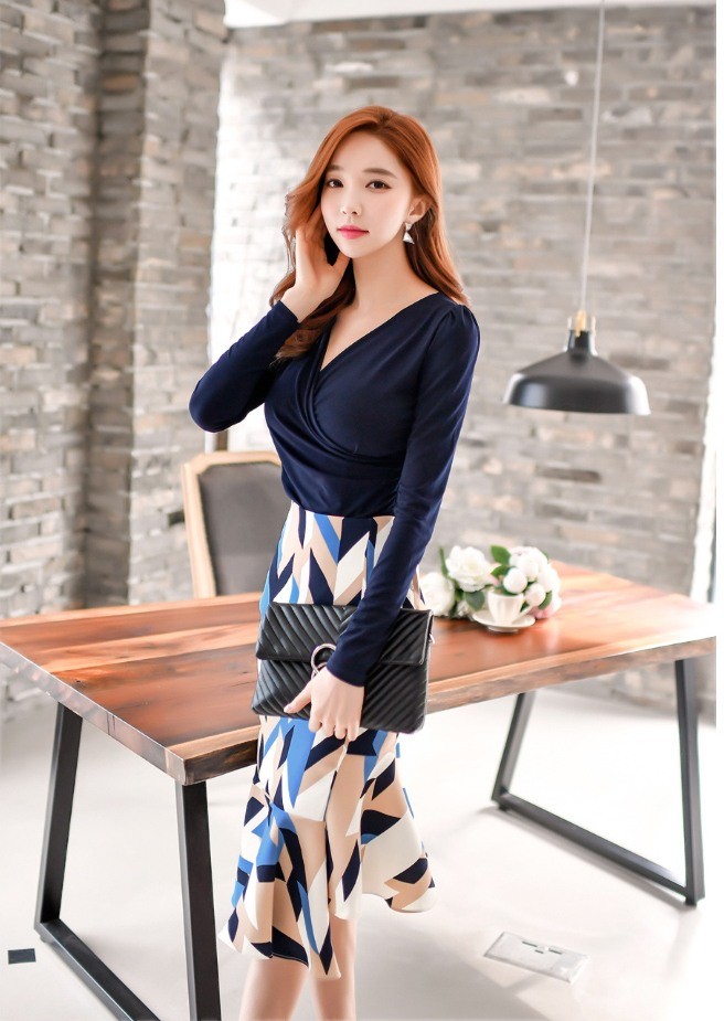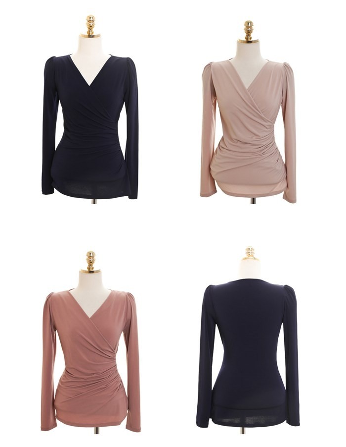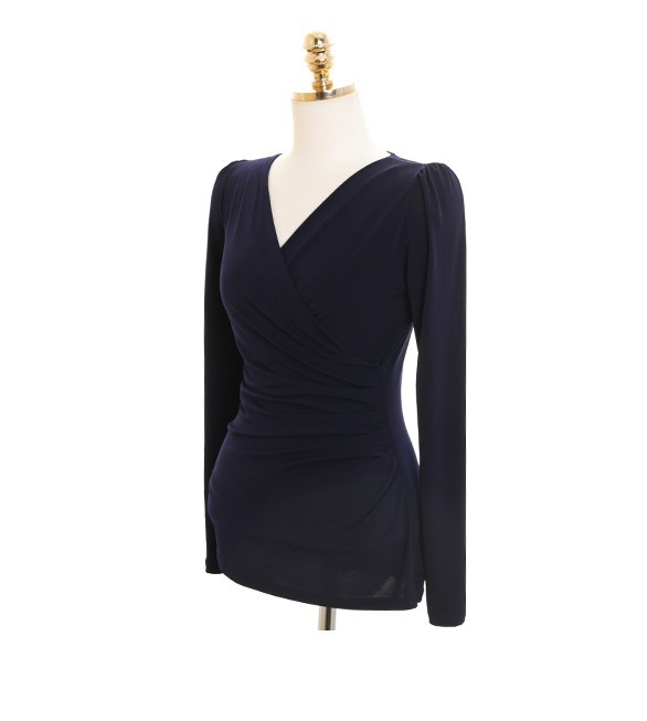 商品名:トップス カシュクール 長袖 無地 きれいめ