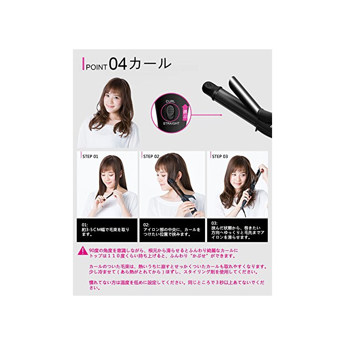「5배 마이너스 이온」:독립 이온의 제너레이터를 내고, 지금까지의 헤어 아이런에 비해 5배의 마이너스 이온을 개방하고, 수분을 유지하고, 머리카락에 영양을 붙여 효과를 완수하는 것 를 할 수 있습니다.