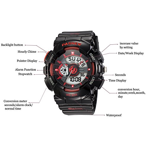MULTI-FUNCTIONAL: Calendar Date Week Month, Alarm, time/date, EL night-light makes it easier to see time in bright light, boasts 3 ATM water-resistant for swimming, Alarm, Stopwatch, Hourly chime, 12/24 hour for mart