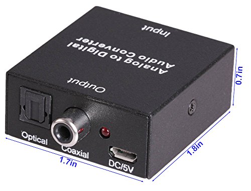 Tbridge Analog ( 3.5mm and R/L ) Audio to Digital ( Coaxial or Toslink ) Audio Converter Adapter