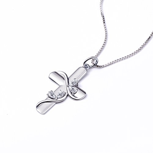 Sterling Silver Necklace with Faith Hope Love Cross Pendant Featuring Heart-shaped Cubic Zirconia Stones
