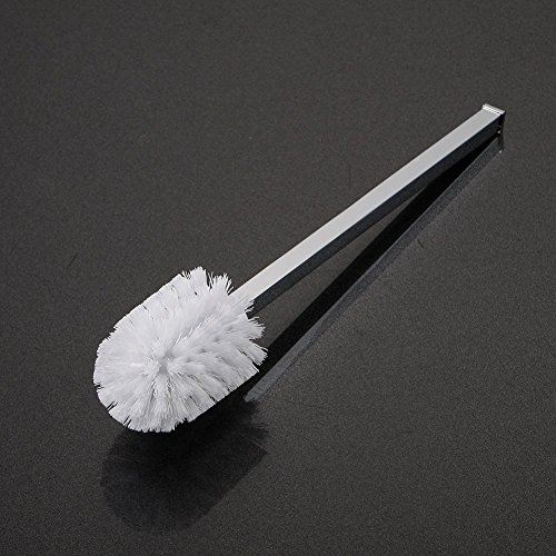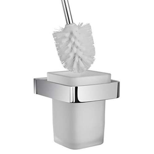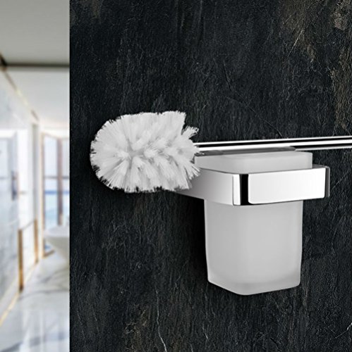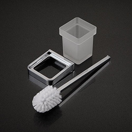 EQLOO L6805 Bathroom Toilet Brush Set Brass Handle with Square Frosted Glass Holder Wall Mounted Brushed Chrome