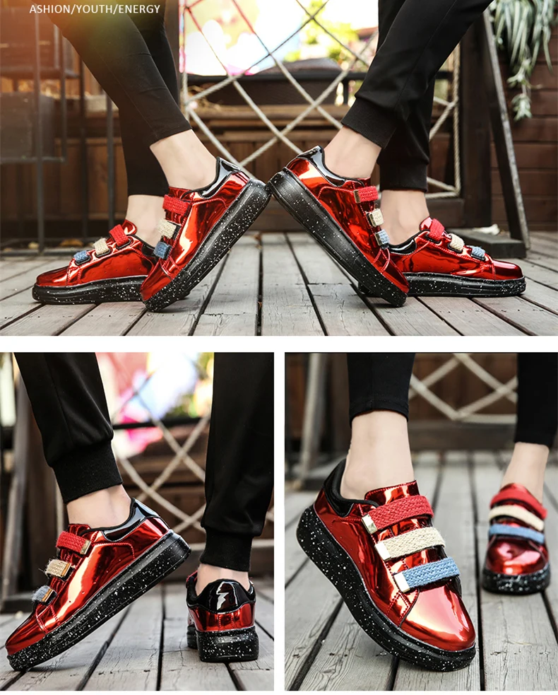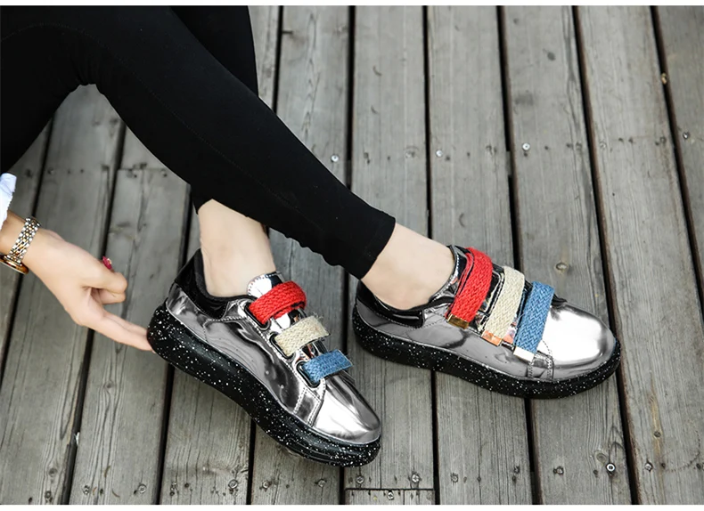 Leather shoes Color:Black,Silver,Red