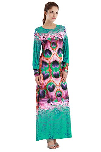 Title : My Wonderful World Women¡¯s Crewneck Long Sleeve Muslim Gown Evening Blue Maxi Dresses