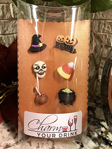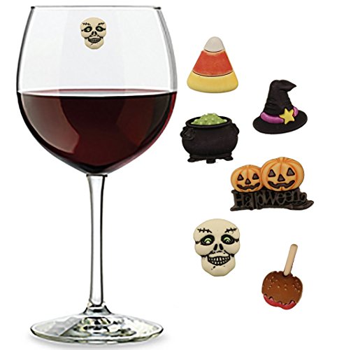 -. Title : Halloween Wine Charms Set of 6 Magnetic Drink Markers & Tags for Stemless Glasses, Champagne Flutes and More