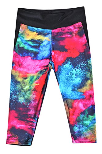 -. Feature : 88% polyester / 12% spandex / Vivid original patterns by colourfast P.R.Inting / Moisture management technology wicks moisture away from the skin / Chafe-resistant flatlock seams and wide waistband for all around comfort / Please see product descrition for SIZE DETAIL
