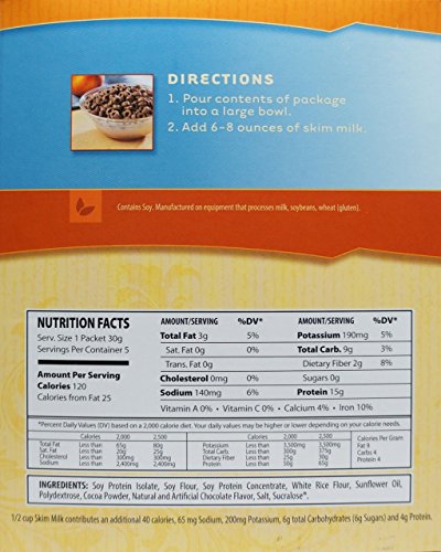 -. Feature : Only 120 Calories Per Serving / 15 grams of Protein Per Serving - (Soy Protein) / Low Fat - 3 grams Per Serving / Low Sugar - 0 grams Per Serving / Low Carb - 9 grams Per Serving