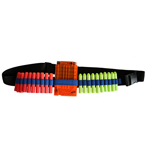 - Feature : High quality toys for children all ages / Color: Black Blue, Length: Adjustable Rope / Elite Darts work with all N-Strike Elite blasters and most original N-Strike blasters / Bandolier can storage 1 Quick Reload Clip(Not Included) and 20pcs bullet(Not Included) / Package Included:1X Bandolier