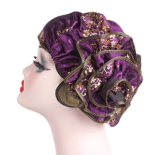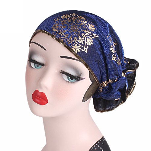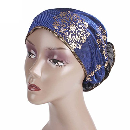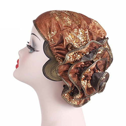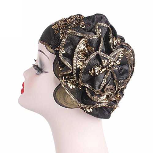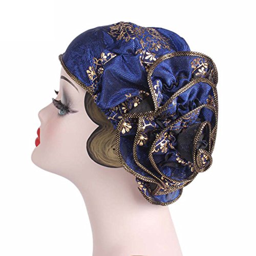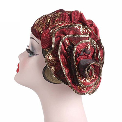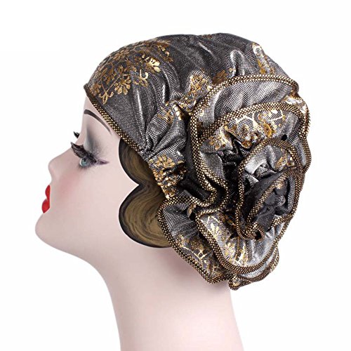 | (Newest trent)/Accessories/Hats/DIRECT FROM USA/Women Elegant Flower Stretch Headscarf Head Wrap Cover Bronzing Polyester Muslim Hat Turban Che... |