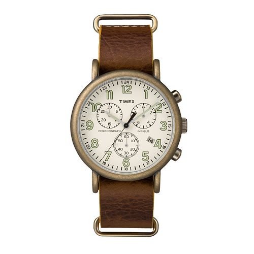 -. Title : Timex Men's Weekender Leather Chronograph Watch - TW2P85300JT