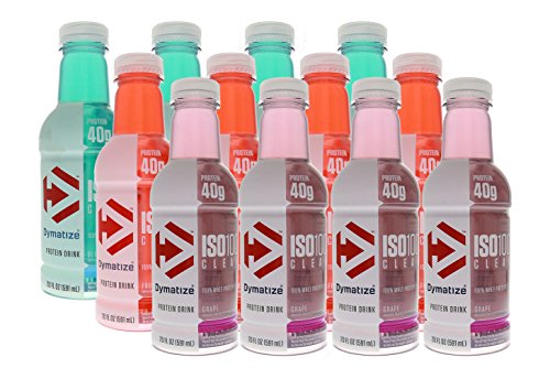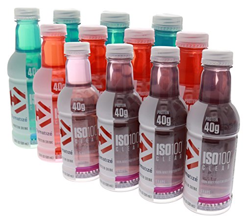 Dymatize ISO-100 Clear 100% Whey Protein Isolate RTD 12/20oz 4 - Blue Raspberry, 4 - Fruit Punch, 4 - Grape