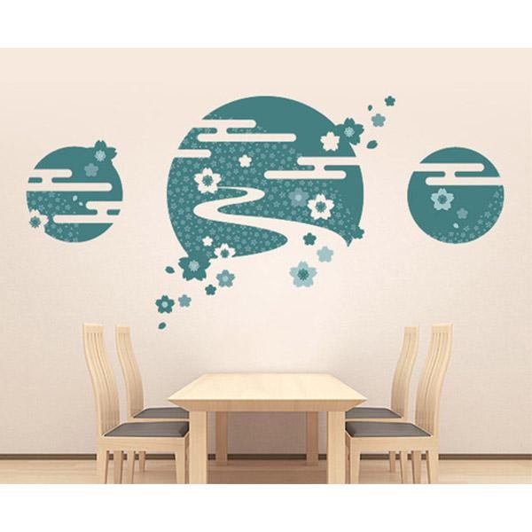 桜や小川を和風の風流な雰囲気にデザインしたウォールステッカーは和室に最適です。