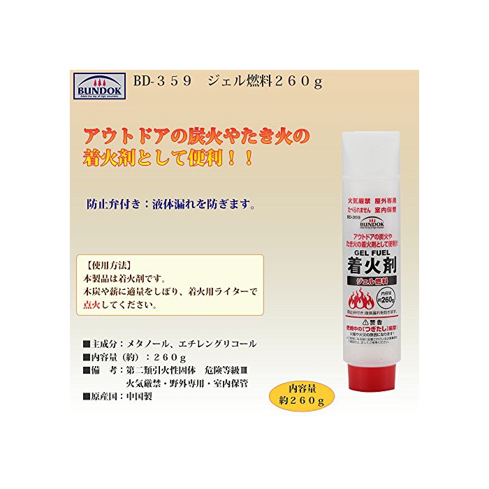 원본상품명: BUNDOK(バンドック) ジェル 燃料 260g BD-359 着火 エコ 炭火 バベキュ 火おこし