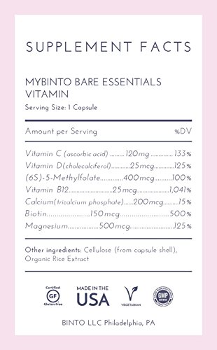 BINTO's Bare Essentials Daily vitamin supports women's health - specifically hormonal balance - with only 8 simple ingredients that women do not get enough of through diet alone.