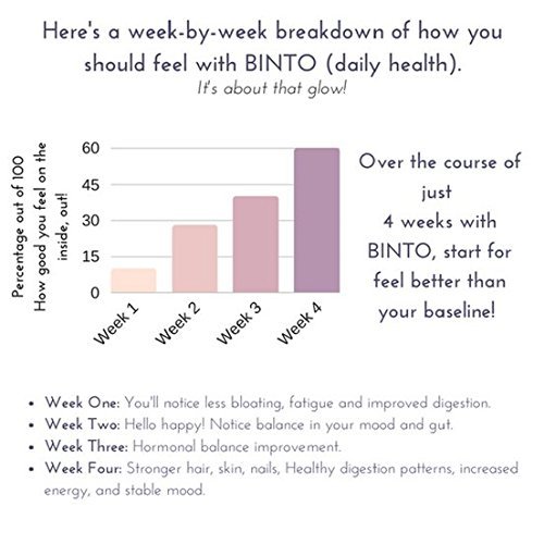BINTO's probiotics help you find balance in your body and your life. It contains 25 billion CFUs of the good bacteria. We use thirteen specific lactobacillus strains to support and target three major issues/systems that women deal with daily; mental health, gut health and vaginal health.