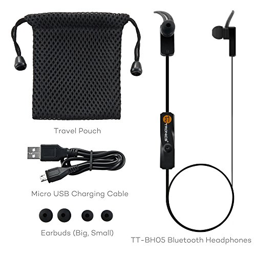 Lightweight, comfortable, with built-in mic for hands-free calling. Package includes: 1 x TT-BH05 Bluetooth In-Ear Headphones; 1 x Micro USB Charging Cable; 2 x Pair of Replacement Ear-Tips (Big and Small); 1 x Travel Pouch; 1 x User Guide