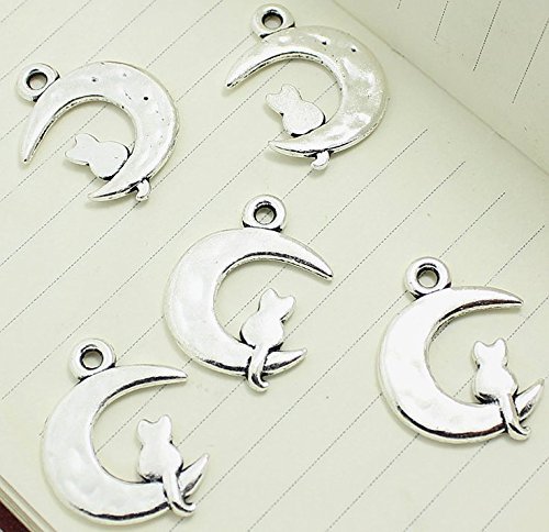 36 Pc Cat and the Moon Pendants Silver Tone 17 x 24mm - Findings, DIY Crafts, Jewelry Making, Charms