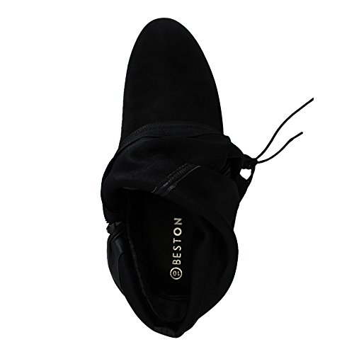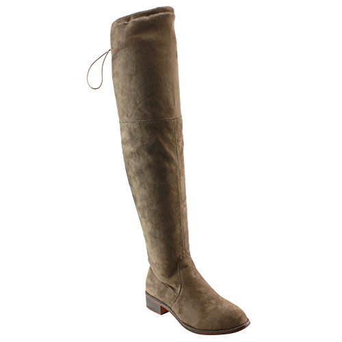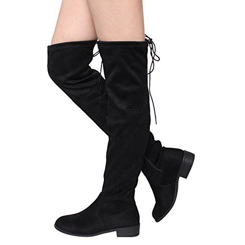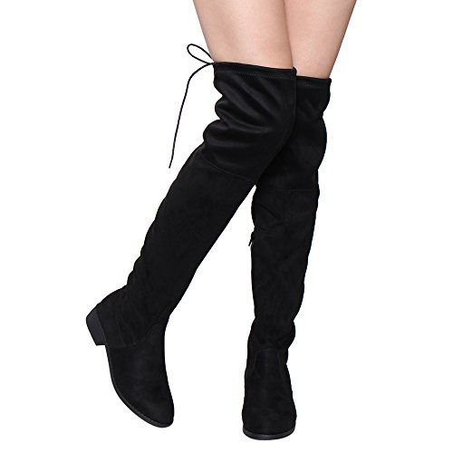 -. Binding : Apparel -. Brand : BESTON -. Department : womens -. Feature : Stretch upper (Remark: it runs small, we sest order a half size bigger will be more comfortable.) / Heelheight measures approximately 1.25" / Drawstring ties at the top of the shaft / Stacked block heel / Product measurements were taken using size 6, width B - Medium. Please note that measurements may vary by size. -. ProductGroup : Shoes -. ProductTypeName : SHOES -. Title : Beston FD97 Women's Stretchy Over The Knee Block Heel Dress Boot Half Size Small