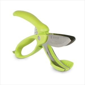 -. Feature : Stainless steel blades with micro-serrated edging / Ergonomic, green design / Durable, sharp edged blades / Easy to grip, non-slip handle / Chops up fruits, vegetables and salad ingredients to toss into a bowl