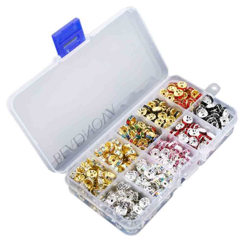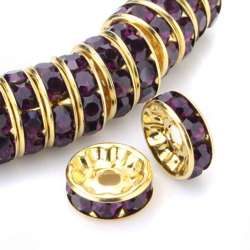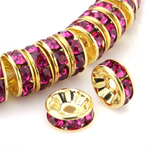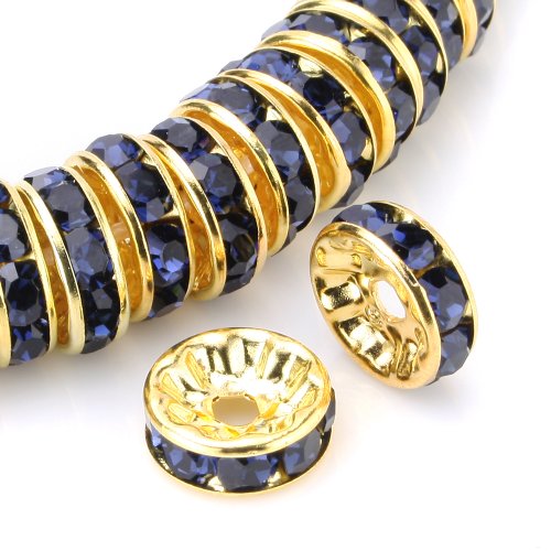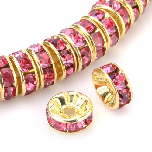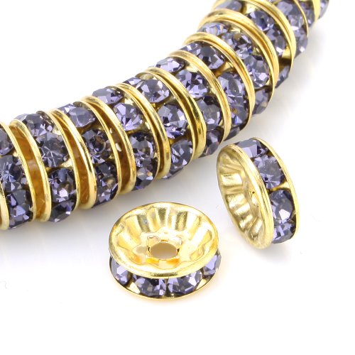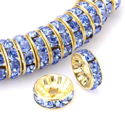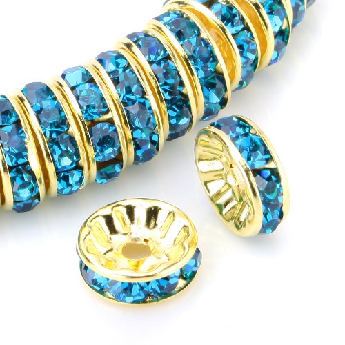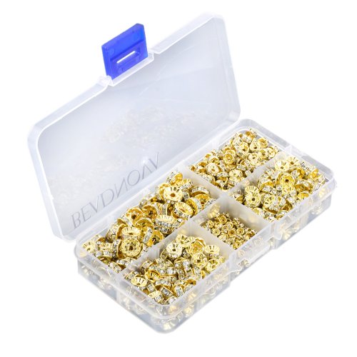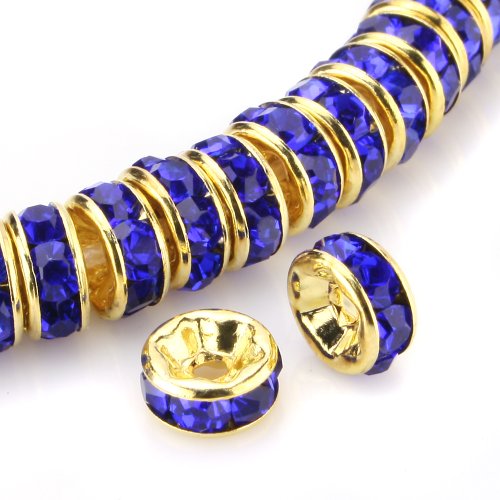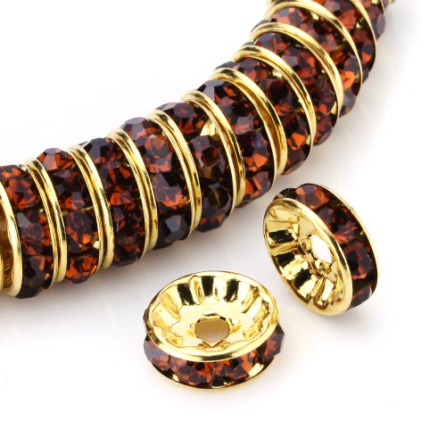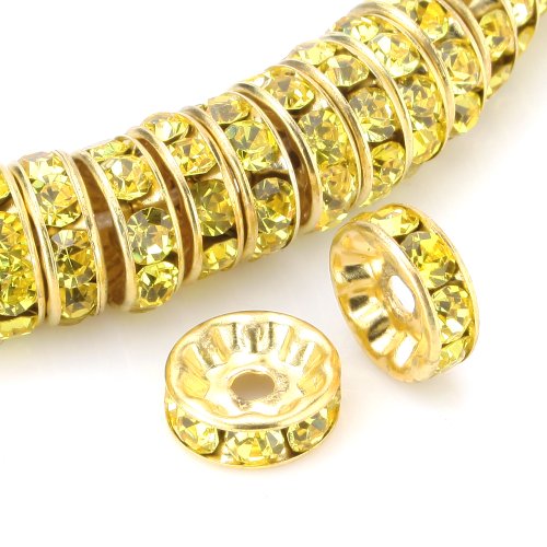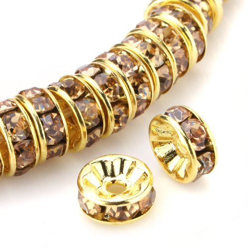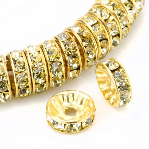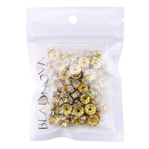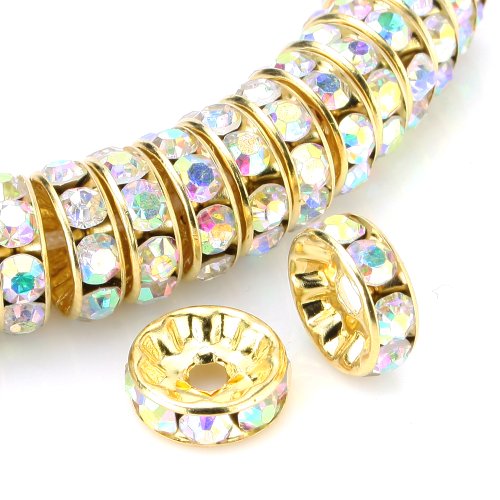 Beadnova 100 Pcs Gold Plated Crystal Rondelle Spacer Beads 6mm (#001 Clear Crystal)