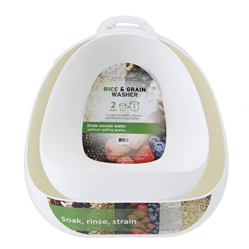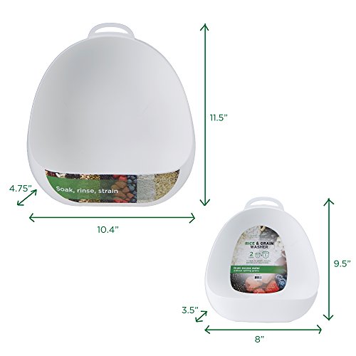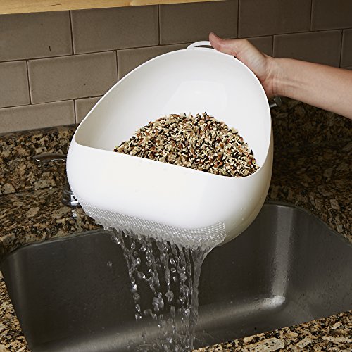 Mind Reader Rice Washing Bowl with Handle, Washes Grains Vegetables, Two Sizes included, Colander, White