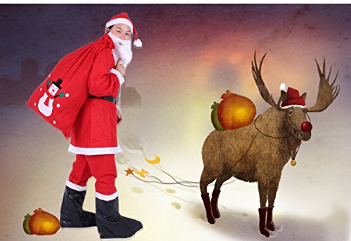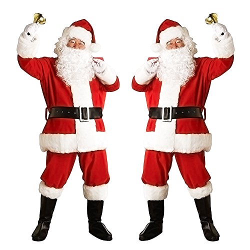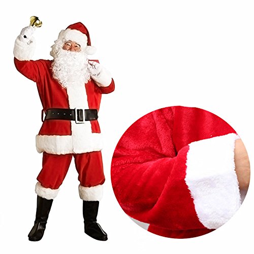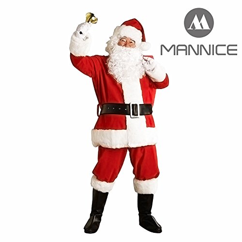 Title : Mannice Christmas Santa Claus Costume with Beard, Santa Claus Christmas Suit Adult One Size,Red