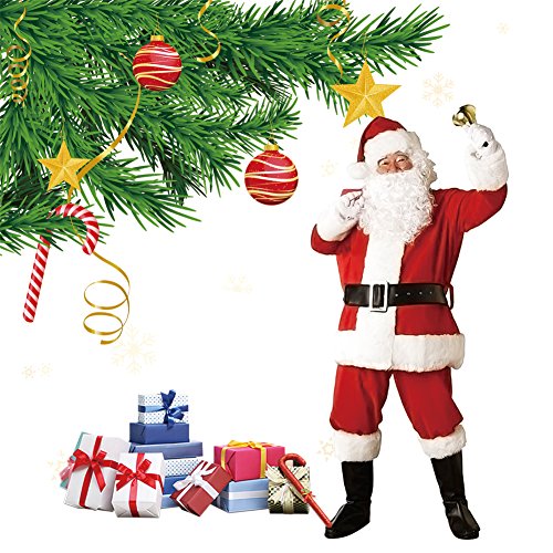 Feature : Material: This suit is made of velvet-like duvetyne for a reliable comfort even when you're putting in those for long hours in outdoor / Durable:Light weight but durable, this santa suit is easy to wear year after year. / Package included:Santa Claus pant Santa coat hat belt beard / Be Welcome:It's an essential Christmas fancy costume suit. Friends, family, and the kid inside everyone will enjoy a visit from Santa / One Size: Elastic waist design pants are designed to be tucked inside boots or boot-tops, fit for most. Please Review the detail size before making a buying decision