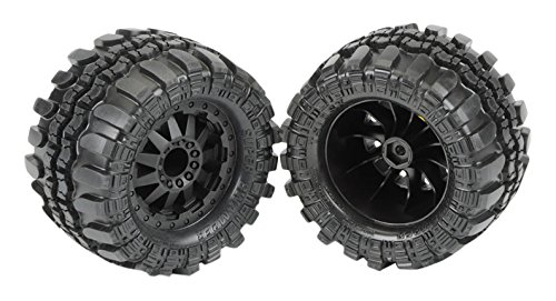 This is a pair of Pre-Mounted 2.8" Interco TSL SX Super swamper tires. Under official license from Interco tire Corporation, Pro-Line is proud to announce the 2.8" TSL SX Super swamper in the legendary M2 compound mounted to the f-11 wheel you need. With "almost scale" not being acceptable and access to Interco's design data, pro-line's engineering staff has reproduced the Super swamper in a scale Configuration not previously available for 2.8" monster trucks. The new 2.8" Super swamper is perfect for drivers who want a licensed scale tire and unmatched performance in all terrains!.Feature