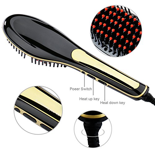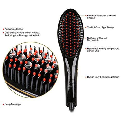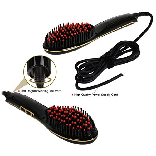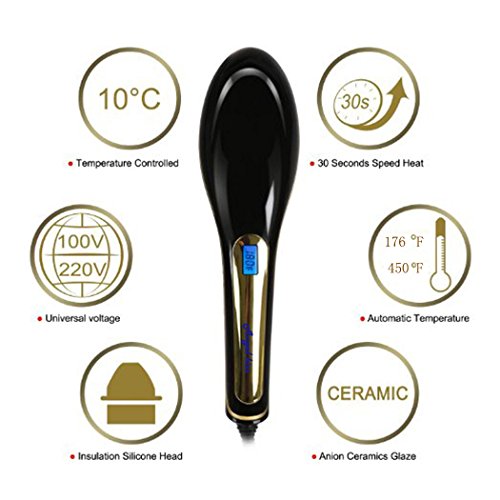 Feature : New Technology version be more comfortable and elegant. effortless and efficient straightening styling. / Digital hair straightener is a adventruous combination for hair straightener and combs.You can get your hair in style while combing your hair / Dual voltage operation support: 110V~240V.Instant heat-up and recovery:2 minute heat up to 365℉ / Ceramic Iron Straightener Detangling Brush Anion Hair Massager.Anion moisturizing and hydrating care, to do a deep care with oil treatment for the hair / Salon High Heat:Use your desire degree heat with digital controls to get professional results quickly