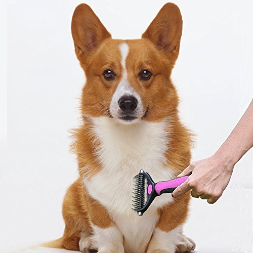Aipet Dematting Comb, Dematting Tool Grooming Rake for Dogs and Cats, Professional Rake Brush with Double Sided Rounded Steel Removes Dead Matted or Knotted Hair