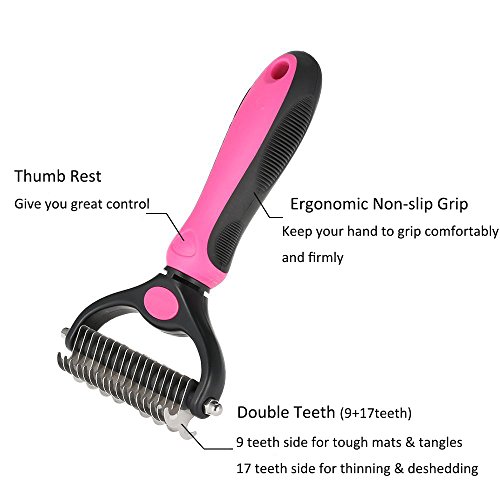 2-in-1 Stainless Steel Head: Start with thinner side for stubborn mats and tangles while the thicker side for thinning and deshedding. Achieve faster and more professional dematting and grooming results! Hard to rust, ultra durable and easy to clean.