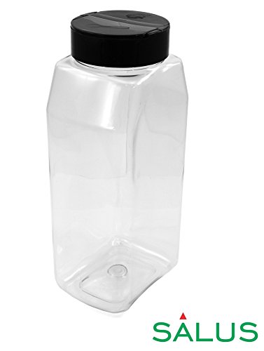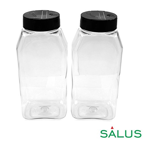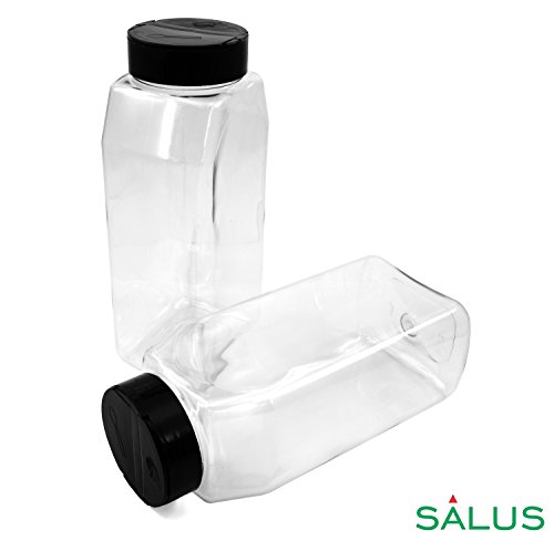 SALUSWARE - 2 PACK - 32 Oz with Black Cap - Plastic Jars Bottles Containers – Perfect for Storing Spice, Herbs and Powders – Lined Cap - Safe Plastic – PET - BPA free - Made in the USA