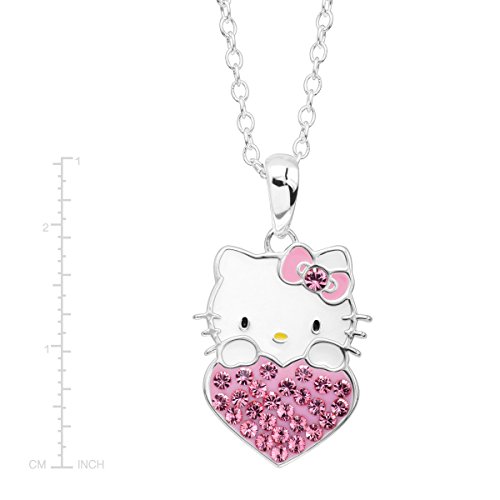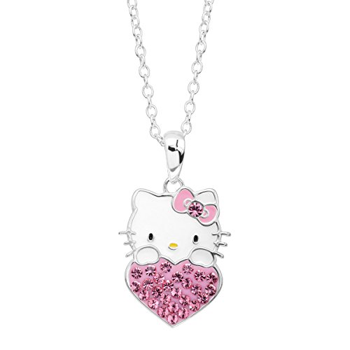 The perfect gift for the October-born in your life! Celebrate with this Hello Kitty heart pendant, crafted in sterling silver-plated brass, featuring round-cut pink crystals. Piece measures 1 by 5/8 inches. Comes with a sterling silver-plated brass 18-inch cable chain with a spring ring clasp.Feature