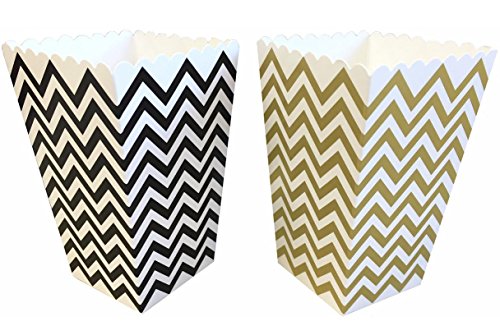 Outside the Box Papers Popcorn Boxes - Chevron Pattern- 24 Pack Gold, White,Black