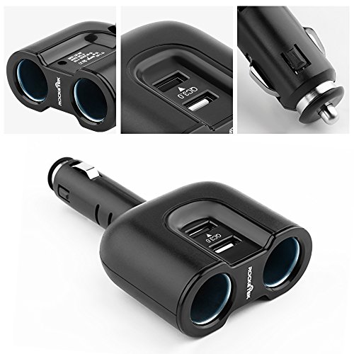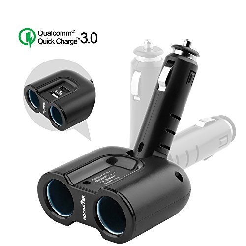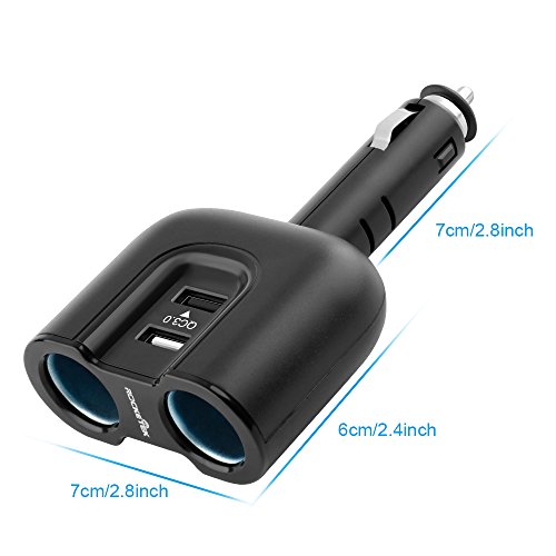 Quick Charge 3.0 Dual USB Car Charger Splitter Adapter, Rocketek 2 USB + 2 Socket Lighter adapter with 10A Fuse - 1 x Smart Port USB + 1 x QC3.0 Port USB